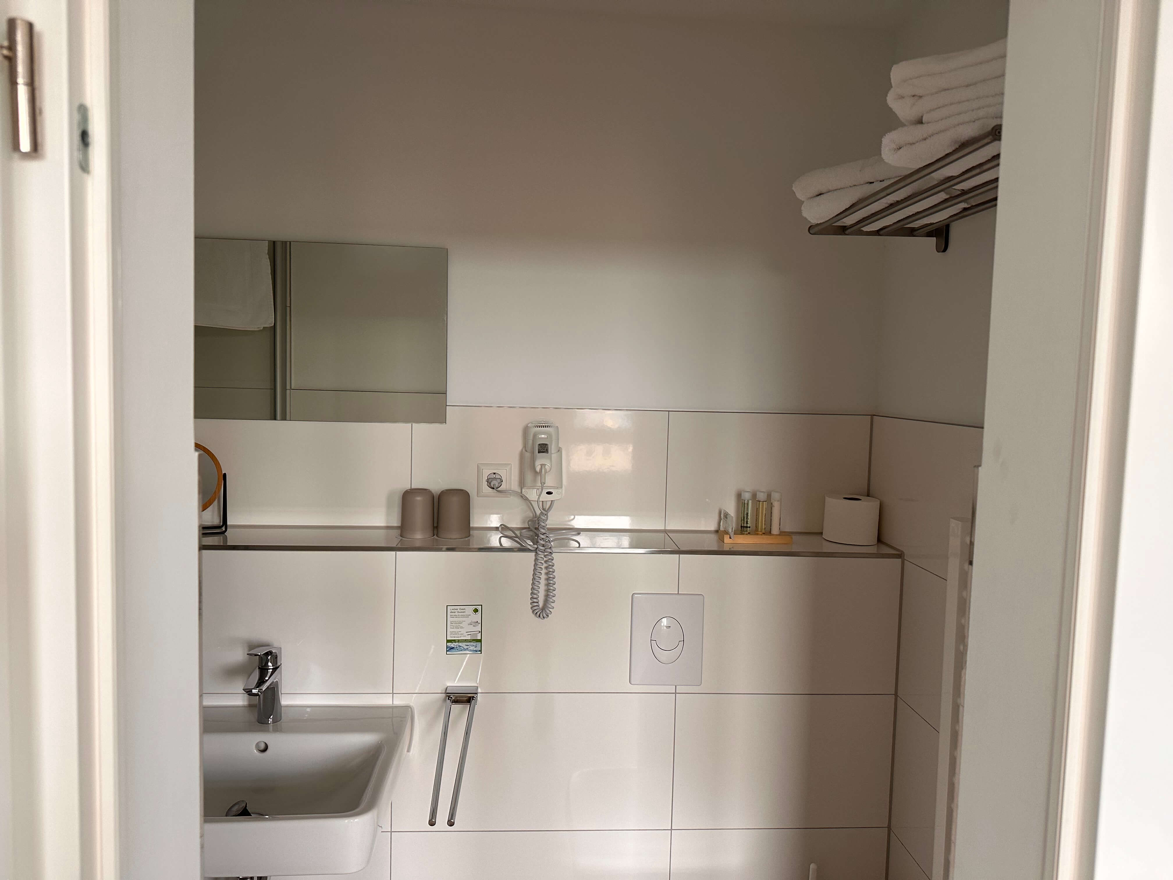 Ausstattung: Flachbild-TV, Wasserkocher, Tee- und Kaffeezubehör, Bad mit Dusche, Haartrockner, Bettwäsche + Handtücher inklusive.