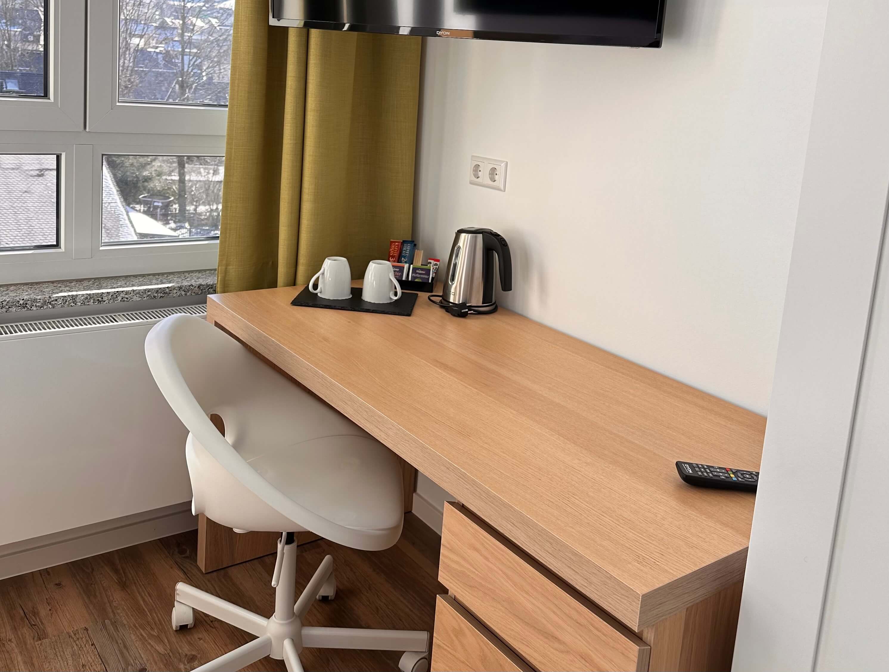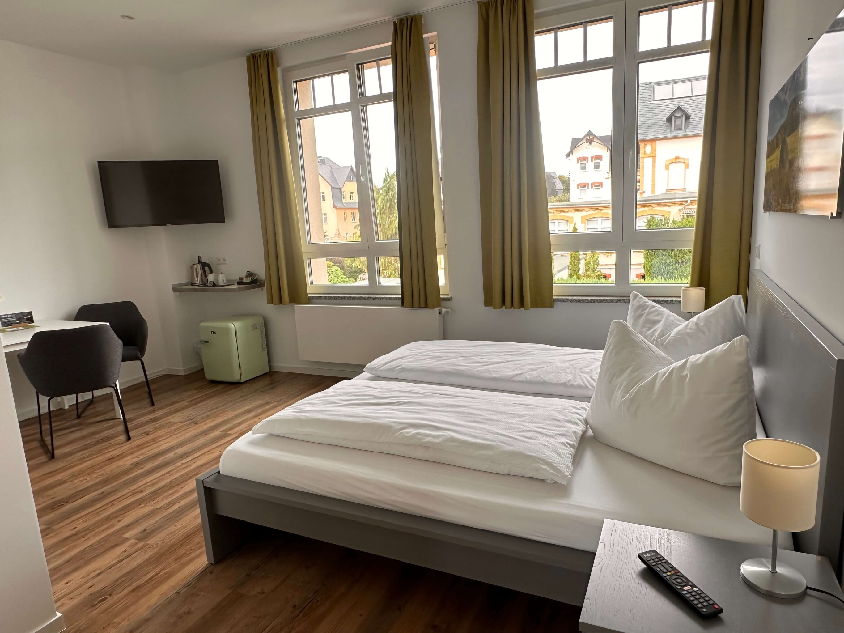 Im Urlaubshaus Erzgebirge finden Sie jede Menge Komfort: Freies W-LAN, Einzel- bzw. Doppelbetten und TV sind selbstverständlich. In jedem Zimmer steht ein Wasserkocher und ein kleiner Kühlschrank (außer Budget Doppelzimmer) zur Verfügung. Die Familien-Appartements haben zudem eigene Küchen, ausgestattet mit Toaster, Herd, Kaffeemaschine, Kühlschrank und Geschirrspüler. Zusätzlich können Sie warme Tage auf den Appartement-Balkons genießen oder alternativ die Terrasse zum Sonne tanken nutzen.